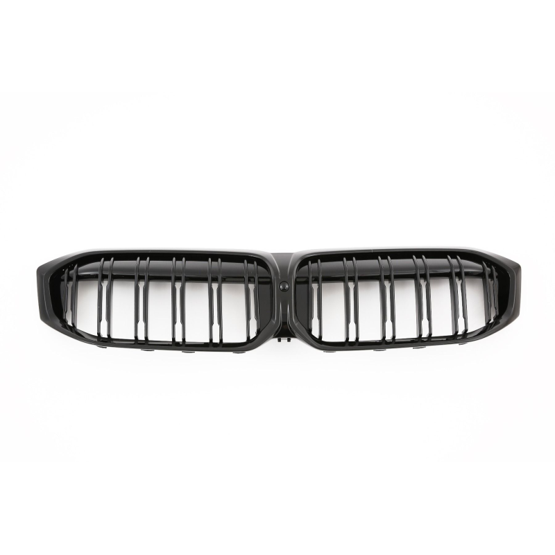 Wysokiej jakości sportowa atrapa chłodnicy z podwójną listwą w błyszczącym czarnym kolorze (Glossy Black), wykonana z trwałego i odpornego na uszkodzenia ABS. Idealnie dopasowana do BMW serii 3 typu G20 (sedan) i G21 (touring) od wersji LCI (07/2022). Kompatybilna z systemem kontroli klap powietrza oraz kamerą Parking Assistant Plus. Montaż odbywa się w systemie 1:1 – bez wiercenia i modyfikacji.