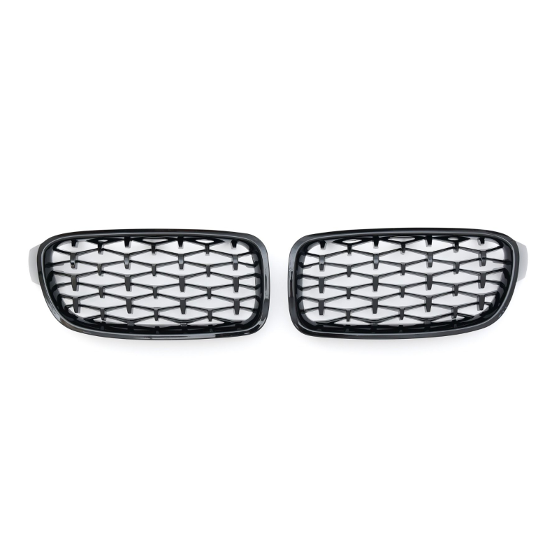 Nowoczesna atrapa chłodnicy typu diamond do BMW serii 3 F30 (sedan) i F31 (kombi), produkowanych w latach 11/2011–02/2019. Całość utrzymana w eleganckim czarnym połysku, bez elementów chromowanych. Wysoka jakość wykonania z odpornego ABS gwarantuje trwałość i perfekcyjne spasowanie z oryginalnymi zaczepami. Produkt montowany 1:1 – bez modyfikacji.