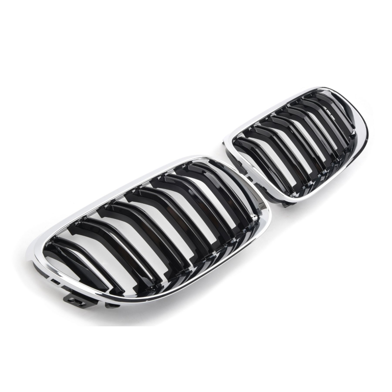 Sportowy grill typu double slat z czarnymi żebrami i chromowaną ramką w wersji błyszczącej (chrome black), przeznaczony do BMW serii 3 Coupé (E92) i Cabrio (E93) po liftingu (LCI, 2010–2013). Wykonany z wysokiej jakości tworzywa ABS, odpornego na uszkodzenia mechaniczne i wpływ warunków atmosferycznych. Prosty montaż typu Plug & Play – bez ingerencji w fabryczne elementy.