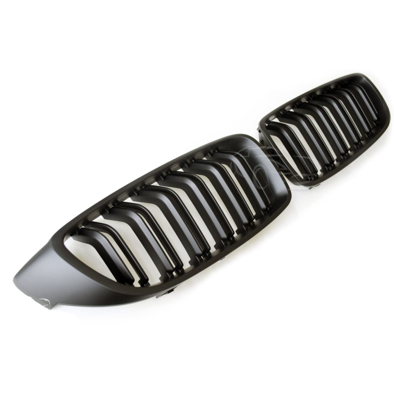 Wysokiej jakości sportowa atrapa chłodnicy w kolorze matowej czerni, dedykowana do BMW serii 4 F32 (Coupé), F33 (Cabriolet), F36 (Gran Coupé), oraz modeli M4 F82 i M3 F80. Wykonana z trwałego ABS odpornego na warunki atmosferyczne i uszkodzenia mechaniczne. Montaż prosty, wymiana 1:1 bez konieczności cięcia lub wiercenia.