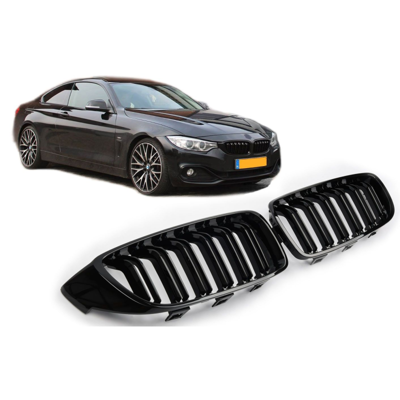 Wysokiej jakości sportowa atrapa chłodnicy w kolorze czarnego połysku, dedykowana do BMW serii 4 F32 (Coupé), F33 (Cabriolet), F36 (Gran Coupé), oraz modeli M4 F82 i M3 F80. Wykonana z trwałego ABS odpornego na warunki atmosferyczne i uszkodzenia mechaniczne. Montaż prosty, wymiana 1:1 bez konieczności cięcia lub wiercenia.