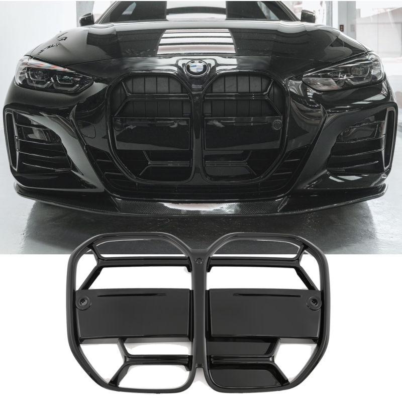 Sportowa atrapa chłodnicy w kolorze czarny połysk (glossy black), pasująca do BMW serii 4 G22 (Coupé) od 10/2020 oraz G23 (Cabriolet) od 07/2027 w stylu Competition. Produkt wysokiej jakości, montaż zalecany u specjalisty.