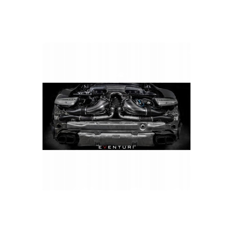 Wyjątkowy dolot Eventuri z włókna węglowego do Porsche 991 Turbo / Turbo S (991.1 / 991.2). Technologia Venturiego, niższe temperatury powietrza, szybsze spulowanie turbosprężarek i poprawa osiągów.