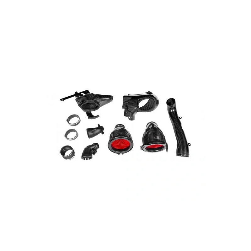 Układ dolotowy EVENTURI to nowoczesna i wysoce wydajna konstrukcja dla modeli BMW M3 G80/G81 oraz M4 G82/G83. Zaprojektowany z włókna węglowego, w wersji z połyskiem, ten system dolotowy nie tylko zwiększa osiągi, ale i prezentuje się znakomicie pod maską.