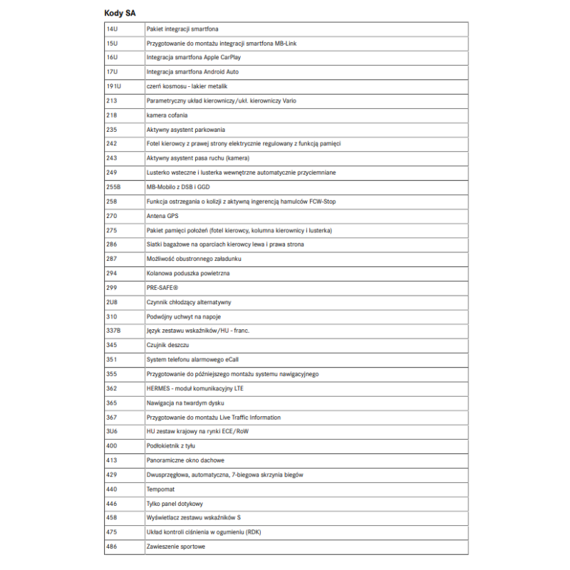 Nie zapomnij zapisać swojej personalizacji, aby móc dodać ją do koszykaOferujemy profesjonalne sprawdzenie auta po numerze VIN w systemie wewnętrznym Mercedes-Benz.