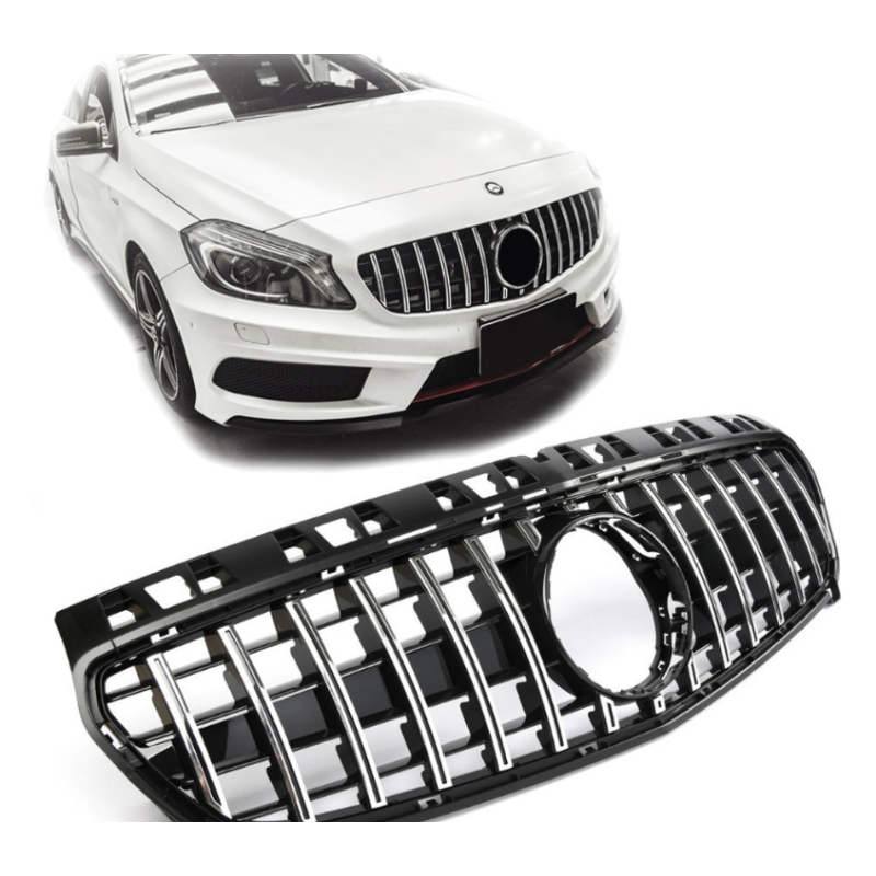 🔥 Grill sportowy Mercedes Klasa A W176 2012-2015 – czarna błyszcząca atrapa z chromowanymi listwami high-gloss!