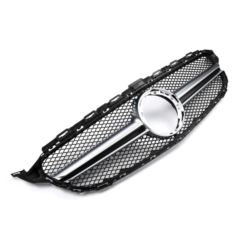 Najniższa cena ostatnie 30 dni: 485 zł Grill sportowy Mercedes Klasa C W205 Facelift 03/2018-2021 (sedan, kombi, coupe, cabrio) – czarna atrapa chłodnicy z mat srebrnymi pionowymi listwami (Avantgarde / AMG-Line, z Distronic i 360°). ABS premium, wymiana 1:1, gwiazda z oryginału.