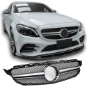 🔥 Pełna czarna atrapa chłodnicy Mercedes Klasa C W205 2014-2018 – błyszcząca czerń + chromowana centralna listwa AMG styl!
